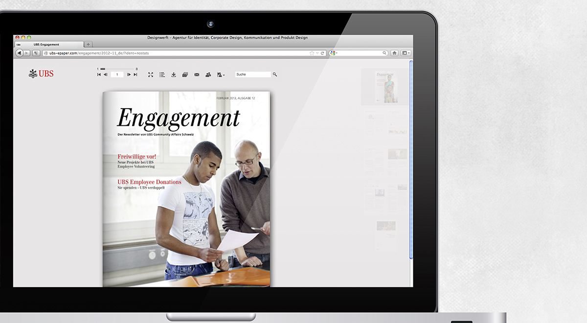 E-Paper // Für den E-Reader von UBS wurde eine neue Navigation auf Basis des aktuellen Corporate Design entwickelt. Neue Icons und eine neue Menüführung wurden implementiert.
